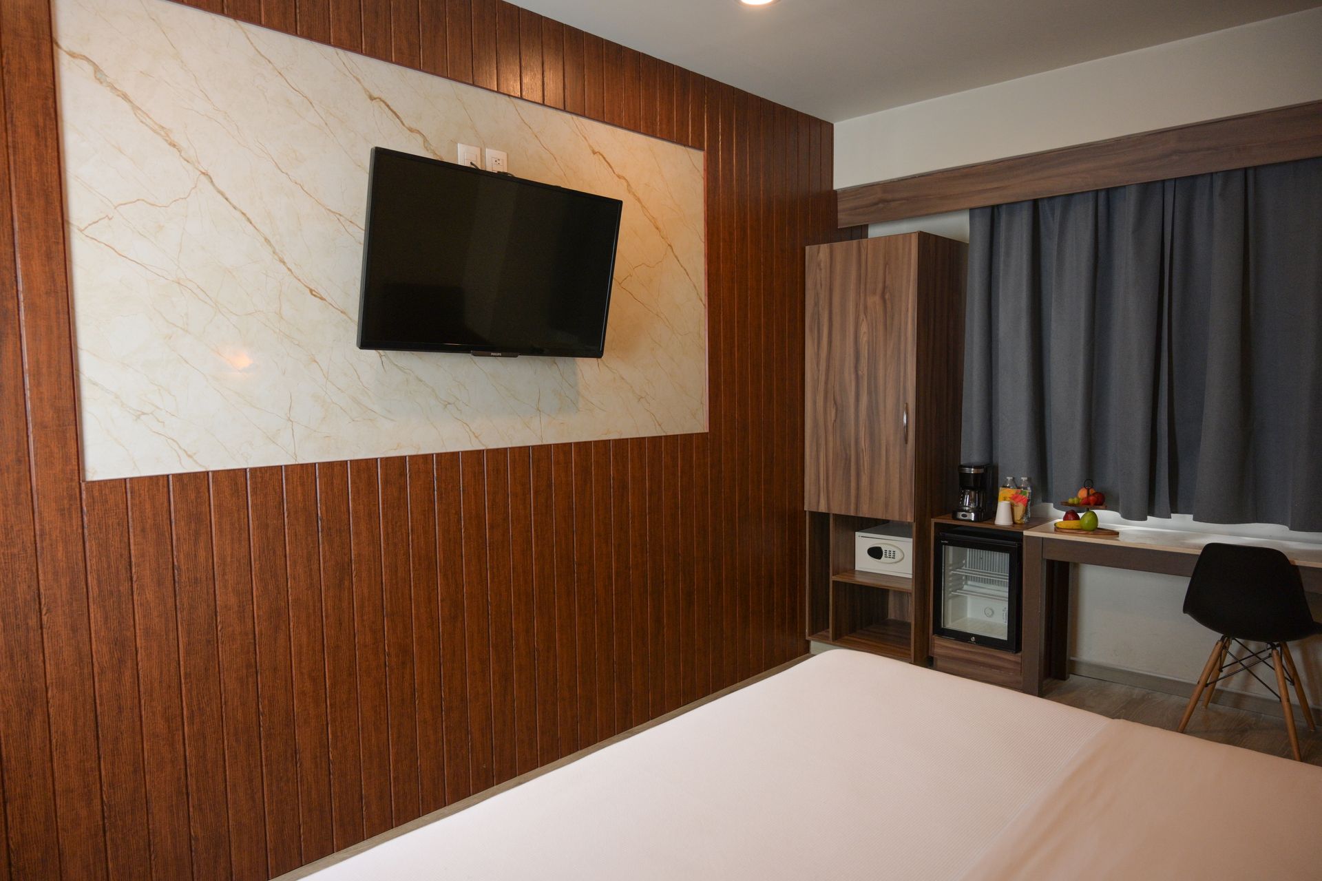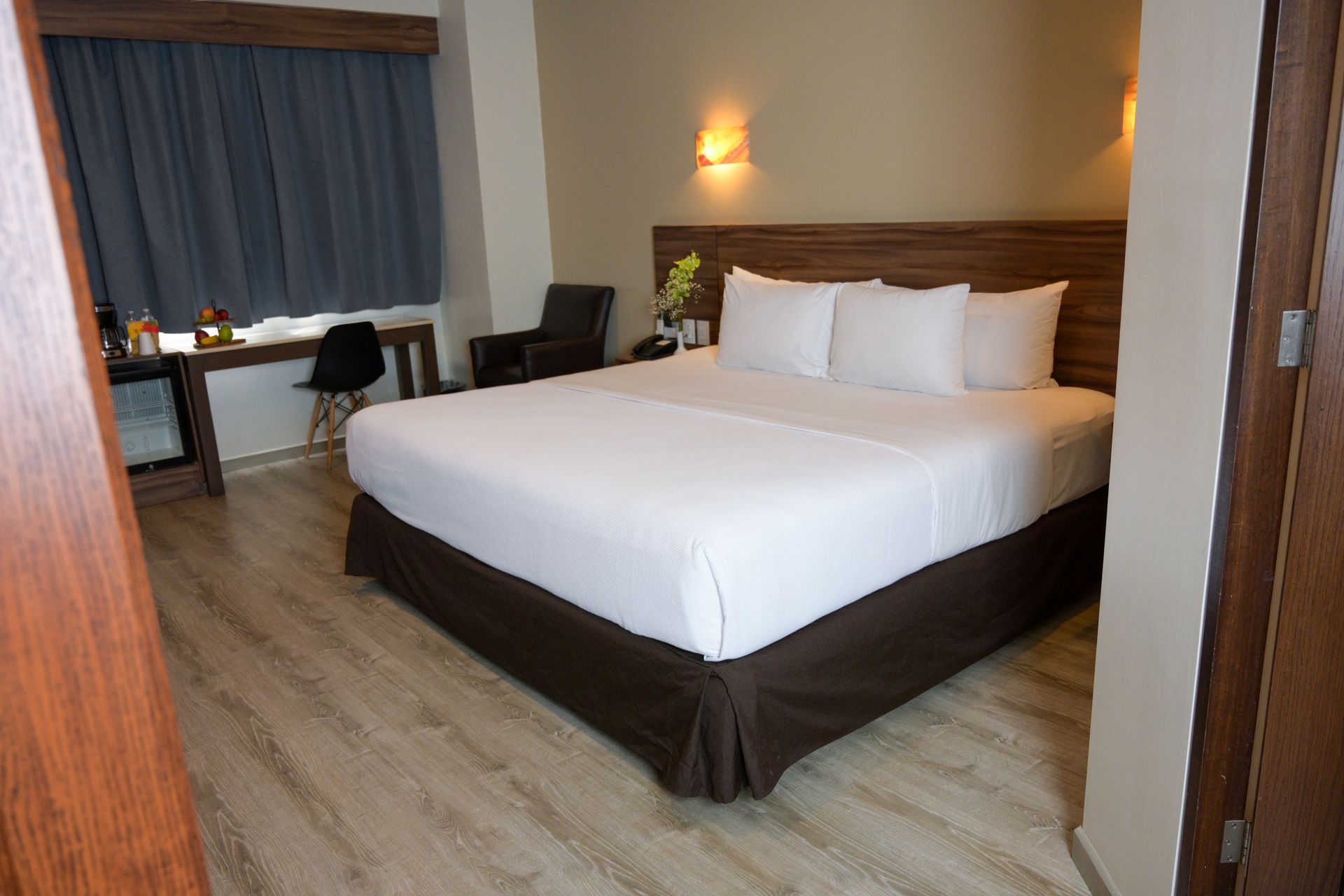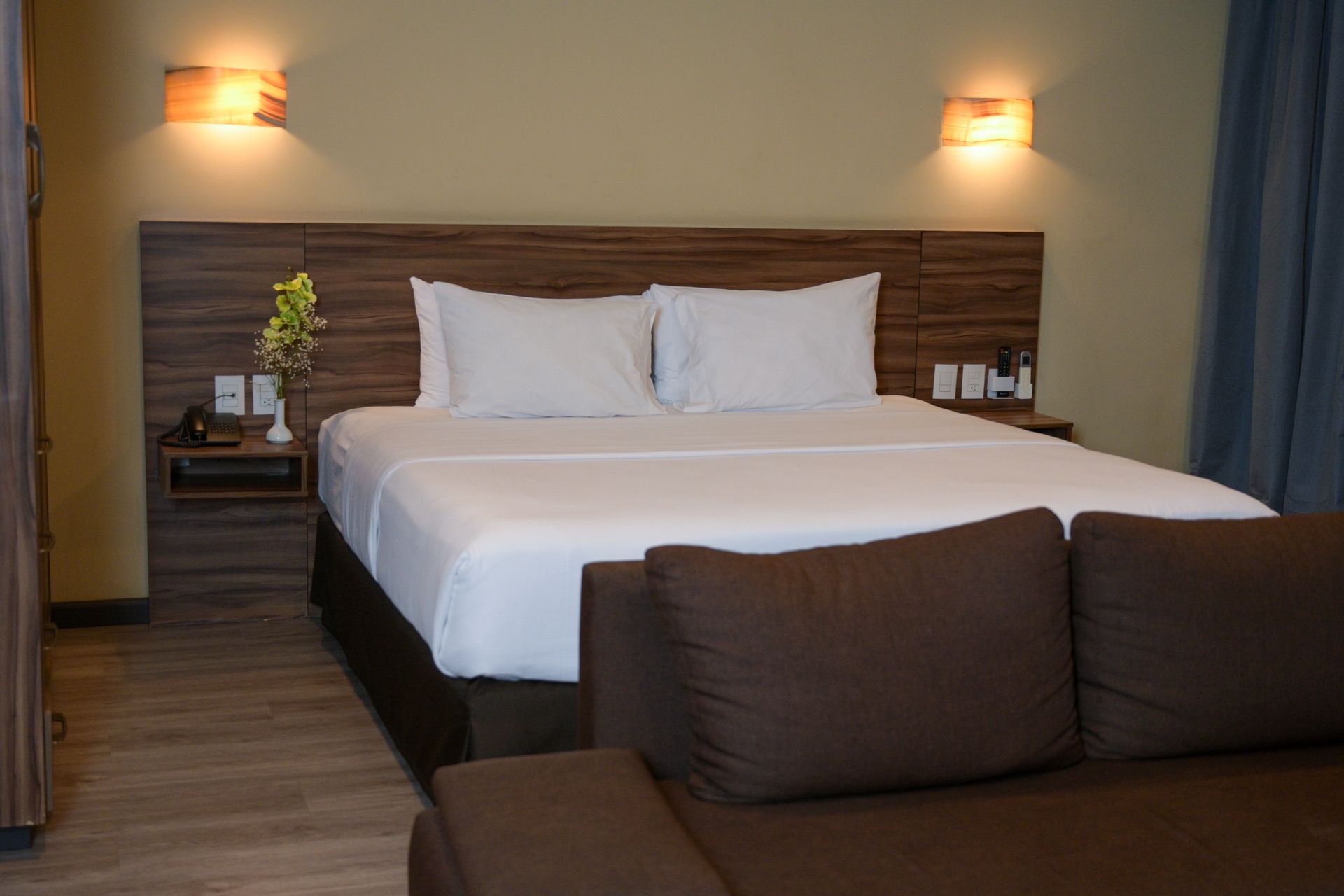 Habitación de 20 m2, con 1 cama king size y equipada con aire acondicionado, internet Wi-Fi, televisión por cable, teléfono, televisión pantalla plana, secador de cabello y kit de cortesía, escritorio, armario, espejo de vanidad, cafetera, minibar y caja fuerte.