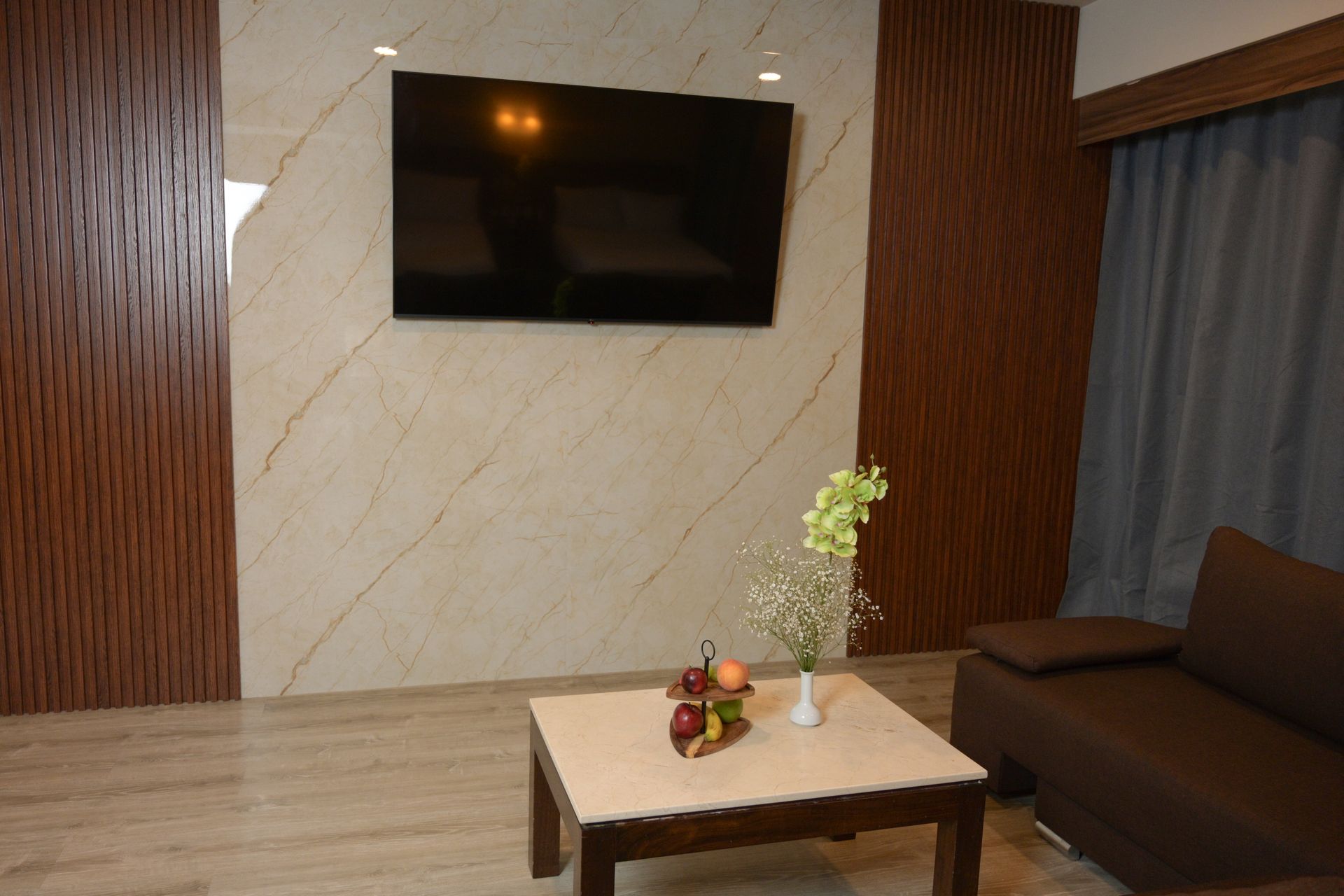 Habitación de lujo 60 m2, con cama king size, dos baños, equipada con aire acondicionado, internet Wi-Fi, televisión por cable, teléfono, televisión pantalla plana, secador de cabello, kit de cortesía, escritorio, armario, cafetera, minibar, caja fuerte, sofá, zona de cocina y microondas, zona de comedor.